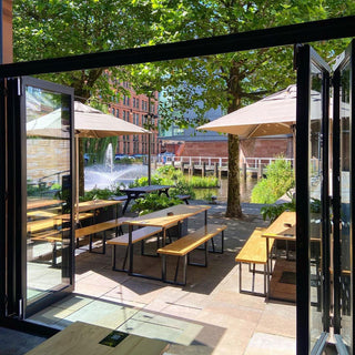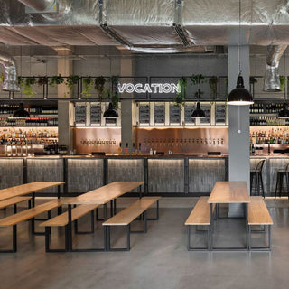 This trendy Manchester based street-food and music venue, spans 8,073 sq ft and is kitted out in bespoke contract H&W indoor and outdoor furniture.