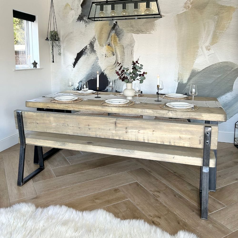 [[u]]Complete dining set[[/u]]: Create a complete dining set with our bespoke collection tables and benches. Benches are typically made 30cm shorter than table lengths to allow them to slide underneath for space saving. See the full collection here.